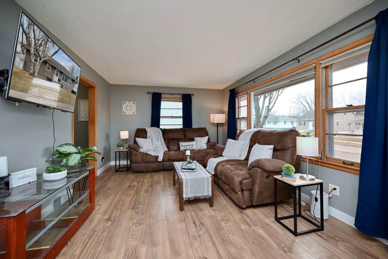 Come check out this gorgeously updated rambler. The main floor features three bedrooms on one floor, a beautifully updated main floor bath with tiled walk-in shower, new vanity and flooring. The lower level includes a spacious livingroom, a full bath and two additional rooms that could be used as an office or bonus rooms. Freshly painted with new flooring and trim throughout. New washer, dryer, refrigerator, water heater & AC.