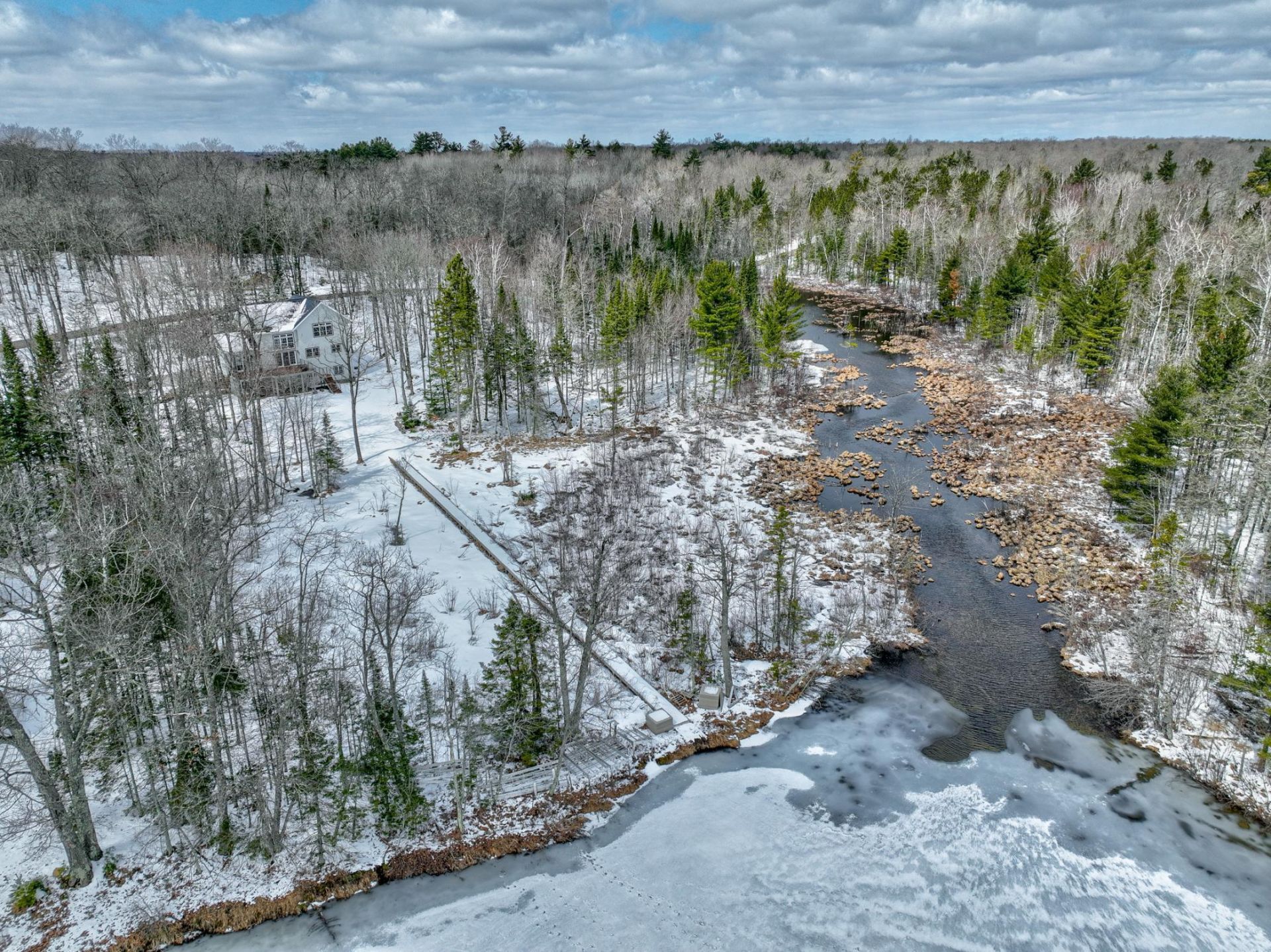 Diamond Lake: Remodeled Home with Rare Privacy, Creek Frontage & National Forest Setting. Well cared for and extensively updated, this 4BR/3BA home offers a beautiful Northwoods setting on crystal-clear Diamond Lake near Cable, WI. The 3. 64-acre property features 668 feet of total frontage on Diamond Lake and 18 Mile Creek, including approximately 138 feet on Diamond Lake. Frontage along 18 Mile Creek enhances the private, park-like setting and creates excellent wildlife habitat, while acres of Chequamegon National Forest land, including trails, across Diamond Lake Drive add to the Northwoods appeal. Designed for comfortable year-round living and easy entertaining, the bright, open main level offers generous gathering space for family and friends. The updated kitchen opens to the main living areas and is complemented by a dining room, laundry room, full bath, and inviting living room with gas fireplace. A sunroom/den brings in beautiful natural light, while the game room could potentially serve as a small additional BR. The loft functions as a private primary suite and includes a sitting/TV area just outside the bedroom and bath. Blackout shades in the primary bedroom and a large walk-in closet add comfort and functionality. The walkout lower level features in-floor heat, 3 bedrooms, 1 bath, a sitting room or office, and a rec area. Eastern exposure brings beautiful sunrises and morning light across the property. Enjoy lake views and peaceful surroundings from the composite deck or the patio off the walkout lower level. Motorized shades add everyday comfort and convenience. Dock included and rests on the land, eliminating the need for seasonal removal. Detached 2+ car garage with unfinished bonus space above. Amenities include whole house generator, Furnace and In-floor heat, Central A/C. Move-in ready and well suited for enjoying the Summer of 2026 on Diamond Lake. Select furnishings included; list is available.