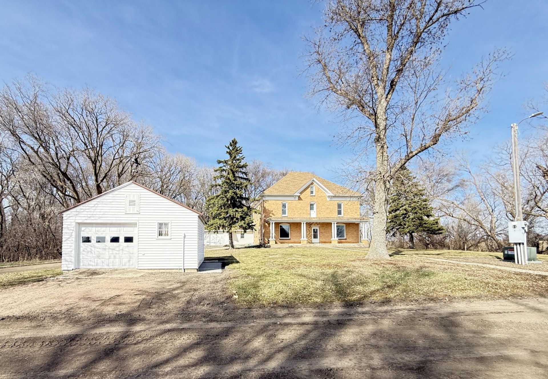 A Rare Sanctuary - 1903 Brick Homestead Awaits! Imagine waking up to the quiet symphony of the country, where the only sounds are the rustle of leaves in your private grove and the distant call of an American Bald Eagle overhead. This is the majestic charm of this unique, 10-acre rural retreat. Standing proudly since 1903, the residence is a stunning 2.5 story American Four-Square, built of solid, beautiful brick atop a well-made stone foundation. This is a testament to quality craftsmanship that has endured for over a century, providing an unshakeable sense of warmth, security, and permanence. The property is divided across two 5-acre parcels, offering a perfect blend of a serene, wooded residence and a fully-equipped working homestead, all protected by a quiet, sparsely-dense community of wonderful neighbors.Step across the threshold and into a world where historic grandeur seamlessly meets practical, modern living. The first impression is one of timeless elegance, defined by original woodwork throughout, including the antique five-panel solid wood interior doors and breathtaking tin ceilings with ornate crown molding on both the main and upper levels. The main level is a homeowner's dream, featuring gleaming hardwood floors and a thoughtfully designed layout centered around main-floor living. The generous 15'X15' Primary Bedroom, a modern laundry room, and a well-appointed bathroom provide all the conveniences of a modern ranch-style home while still enveloped in historic character. Even the two-car attached garage is connected through a newly finished, functional mudroom, making daily life effortless and functional.The heart of the home, the kitchen, perfectly encapsulates the blend of old and new. The space is entirely modernized and built for a true hobbyist chef, featuring stainless steel appliances, and a large center island with a sleek Quartz countertop ideal for gatherings or prepping preserves from your garden. Above, the residence boasts 4 more large bedrooms, ensuring ample space. The upper-level bath offers a true retreat with a contemporary shower alongside the timeless appeal of a classic cast iron free-standing tub. Throughout the home, touches like the stunning stained glass windows in the living and dining rooms add a unique, luminous character?a constant reminder of the home's storied past.Beyond the main residence, the 10 unrestricted acres offer endless possibilities for the self-sufficient-minded buyer. This is a property designed for the homestead-focused life you've always envisioned. The property is a working hobby farm ready for animals, complete with a massive barn set up for horses, divided pastures, loafing sheds, and multiple outbuildings, including a heated, insulated workshop?perfect for a tradesperson or serious hobbyist. With newer, low-maintenance metal roofs on the workshop and barn (~8 years old) and a composite shingle roof on the house (~10 years old), the major structural elements are secured.