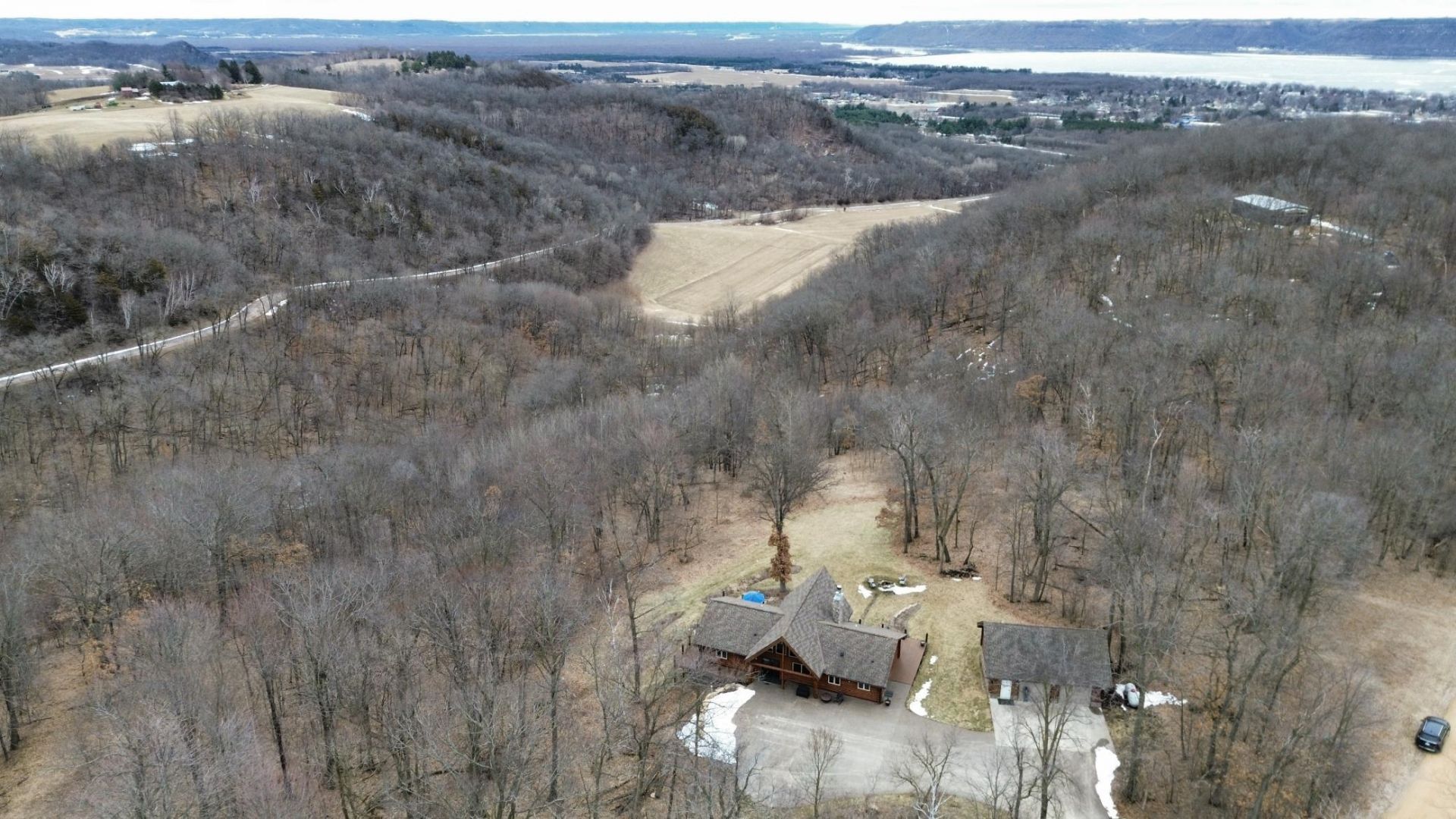 Here is your chance to own a Spectacular Log Home with some amazing city and lake/river views! Situated on 3+ wooded acres in the river valley bluffs of Pepin this home won't disappoint. The home features large rooms for sleeping/gatherings, wraparound deck and patios for entertaining, outside water features, SS appliances, a two sided stone gas fireplace and a two sided stone wood-burning fireplace, granite counter tops, basement heated floors, hardwood flooring, basement bar/kitchen area, house generator, loft area above the garage, screened lounging area behind the garage, exposed aggregate driveway and front patio and the list goes on! This log home was recently stained and chinked last year. If you are looking for privacy, it's located a short distance from the tar road on a private dead end. The Home boosts of tranquility and serenity. Make this one yours, call for a private showing today.